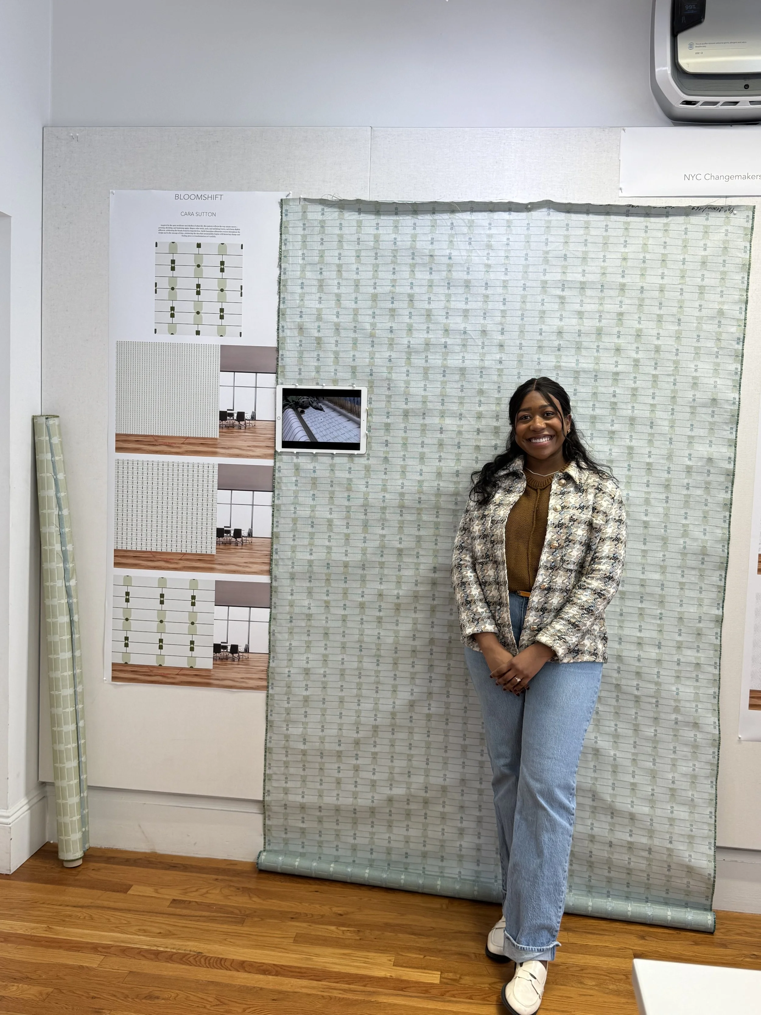 Throughout the experience, participants engaged in design challenges and hands-on workshops. Cara’s creativity stood out during a fabric design challenge, where her concept was one of two selected to be woven and prototyped by Carnegie. The announcement took place during a tour of the Carnegie showroom and creative studio—a moment Cara describes as both surreal and inspiring.